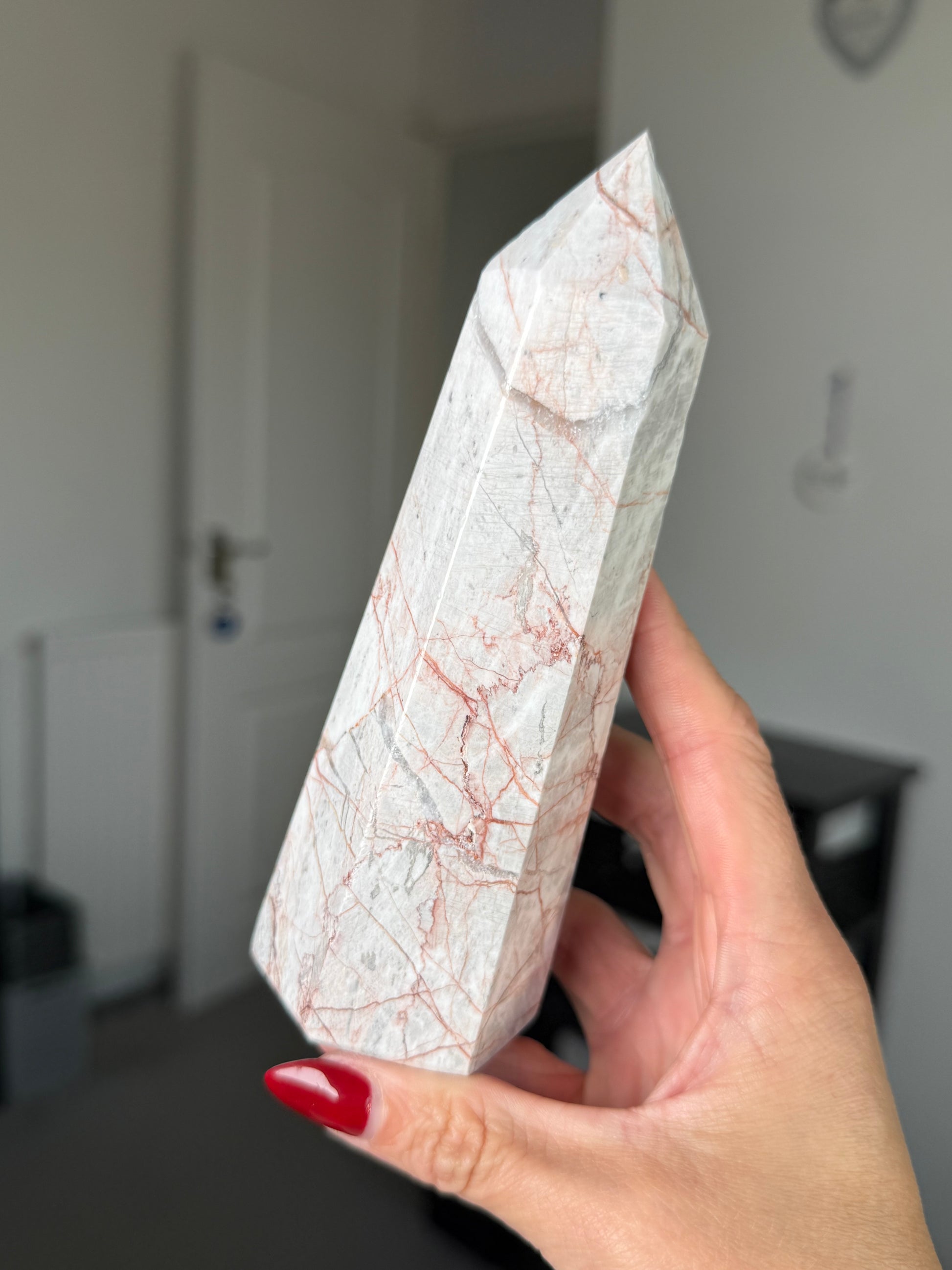 Other minerals are usually present which give it the unique markings and colourings such as Quartz, Iron & Hematite.