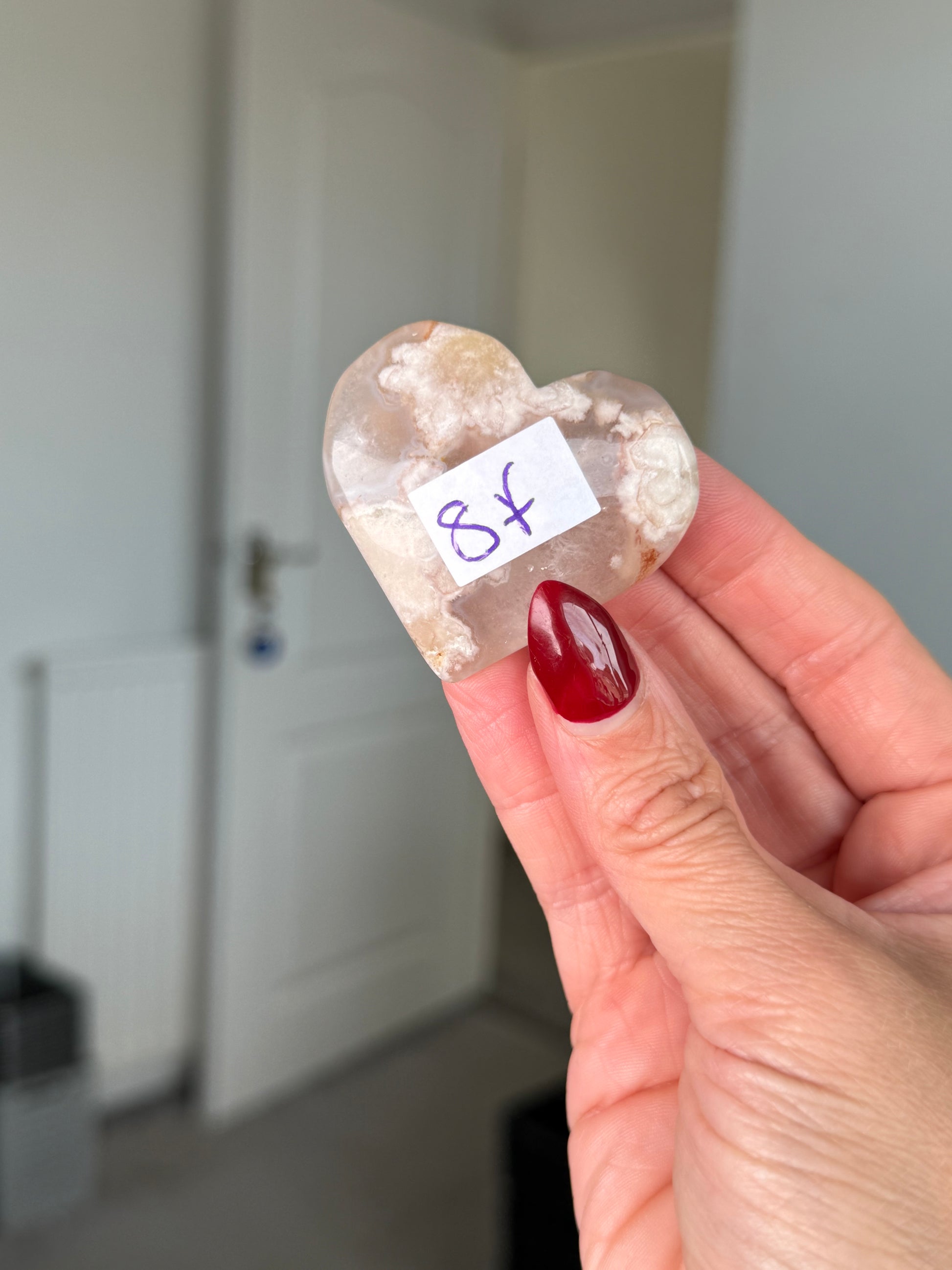 Flower Agate Heart With Stand