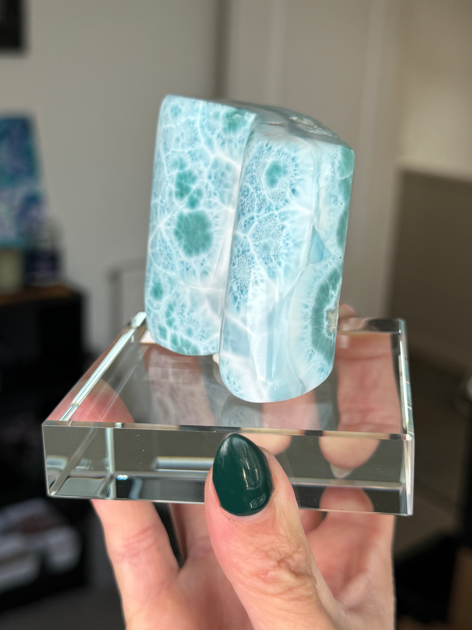 Larimar Core On Glass Stand