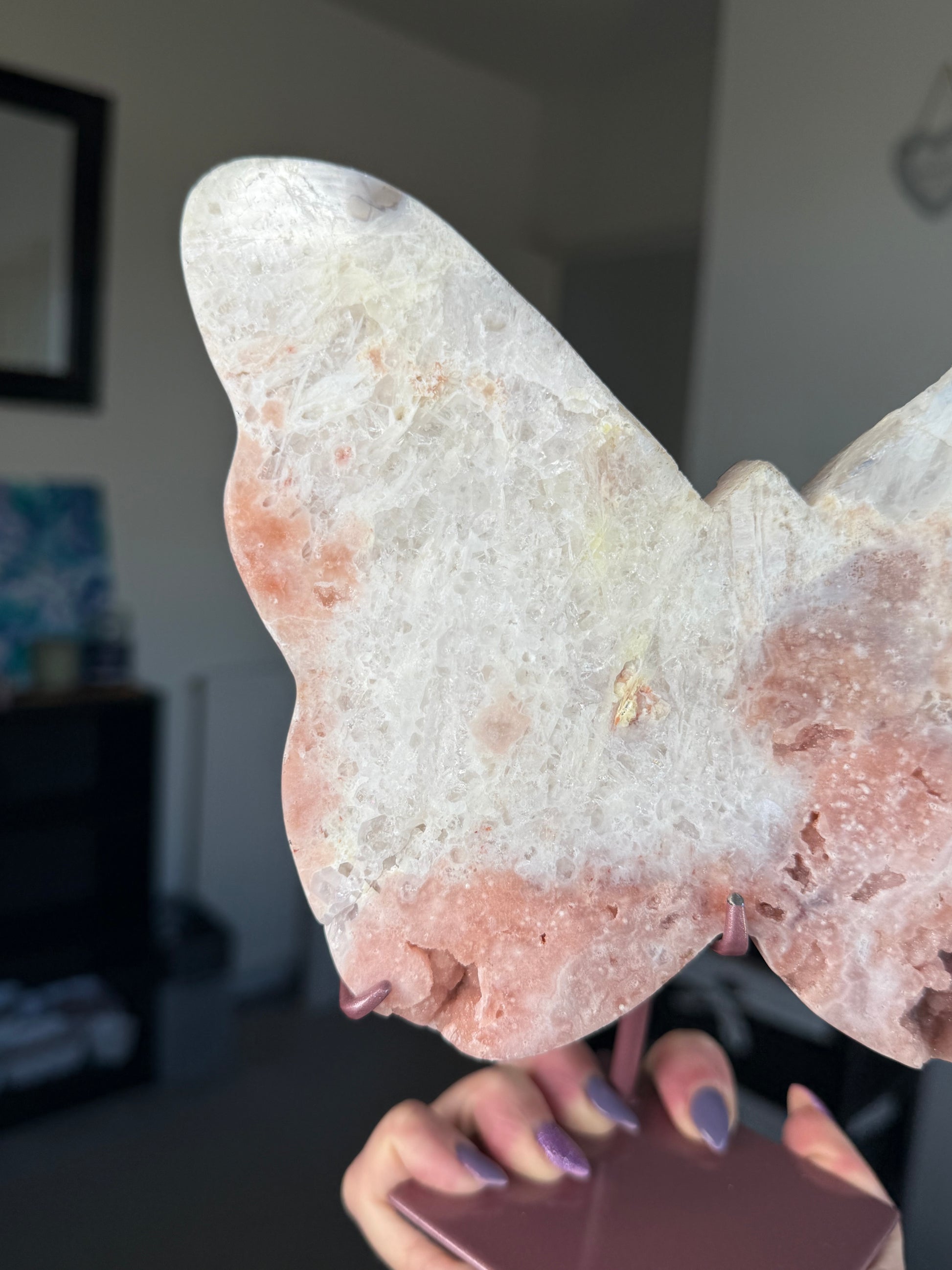 Pink Amethyst Butterfly On Custom Stand